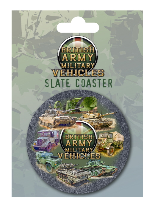British Army Military Vehicles Slate Coaster on Printed Backing Card (E.O.L.)