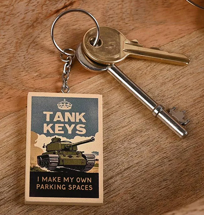 Civil Defence MDF Keyring - Tank Keys (100x40x5mm) (boxed) (NEW)