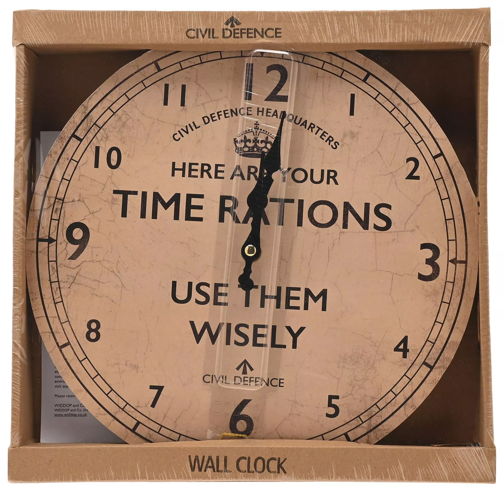 Civil Defence Metal Wall Clock - Time Rations (30cm) (NEW)