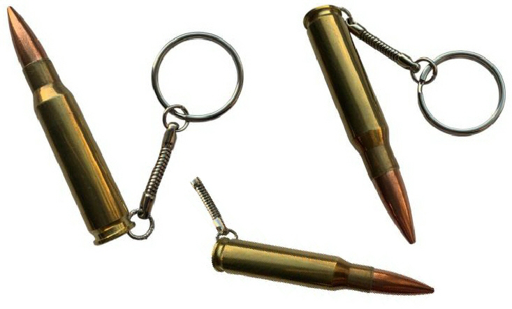 Keyring: 7.62 Brass Real Fired Bullet on Key Chain (styles vary)