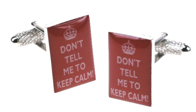 Brass / Rhodium Plated Cufflinks - Don't Tell Me to Keep Calm
