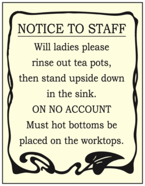 Replica E/S: Notice to Staff - Hot Bottoms