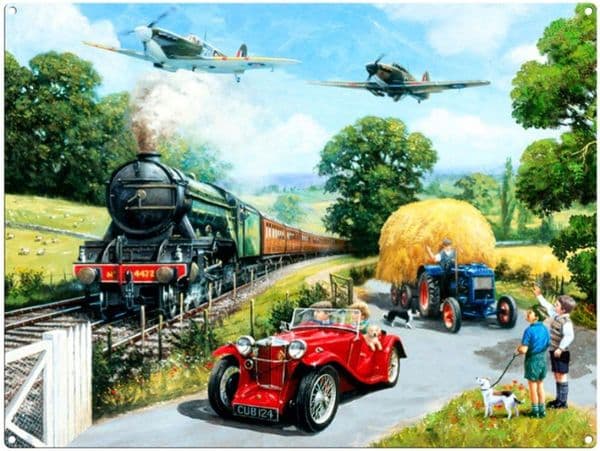 Metal Sign (RL): War Time Summer (Flying Scotsman, Spitfire, Hurricane & MG)