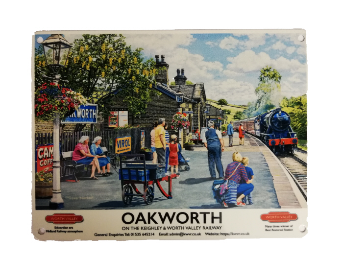 Mini Metal Sign (RL): Travel Poster - Oakworth on the K&WVR