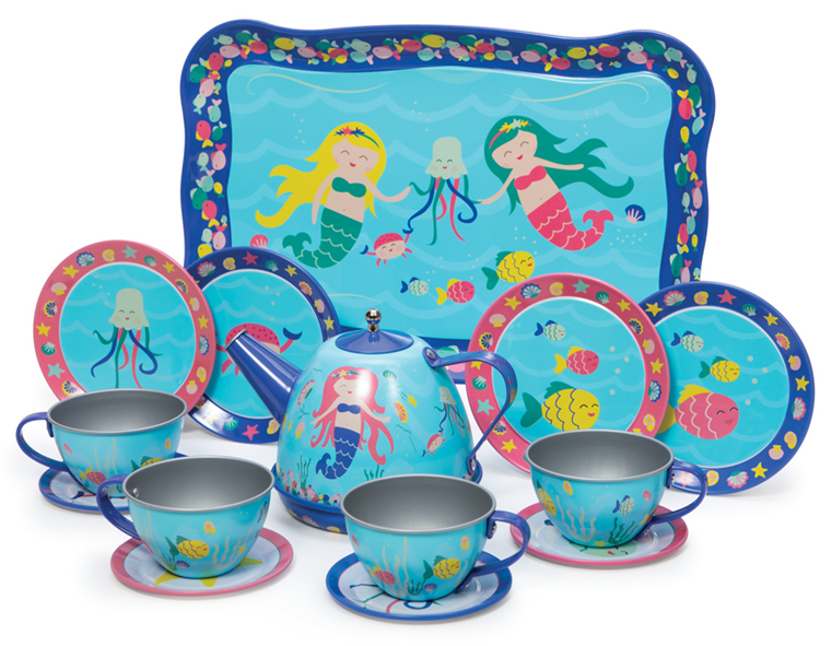 Schylling Mermaid Tin Tea Set 15 Piece (20x30x9cm) (3+ YRS) (E.O.L.) - SAVE 15% !!