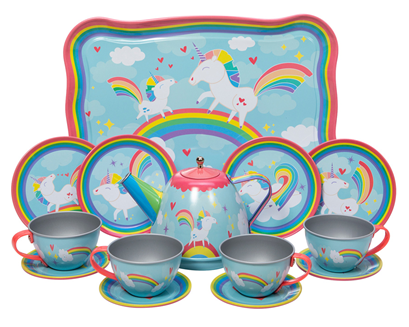 Schylling Unicorn Tin Tea Set 15 Piece (20x30x9cm) (3+ YRS) (E.O.L.) - SAVE 15% !!