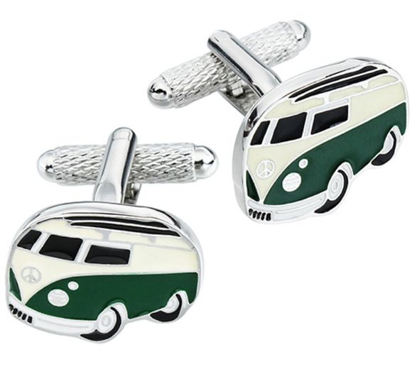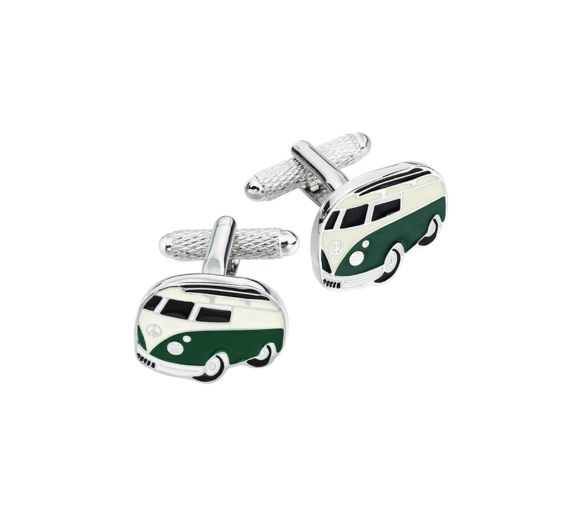 Brass / Rhodium Plated Cufflinks - Camper Van Green