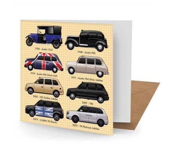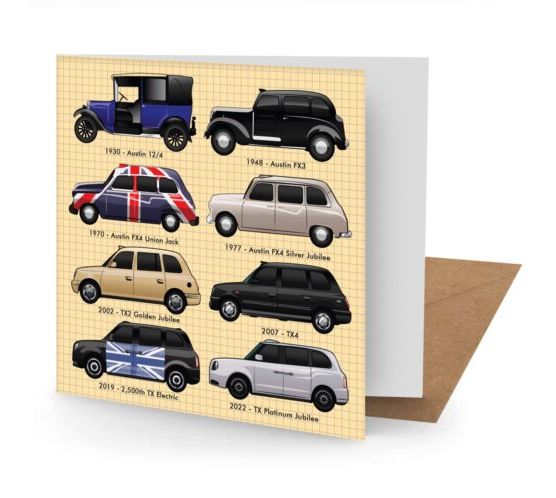Greetings Card - London Taxis (150x150mm Plain) (NEW)