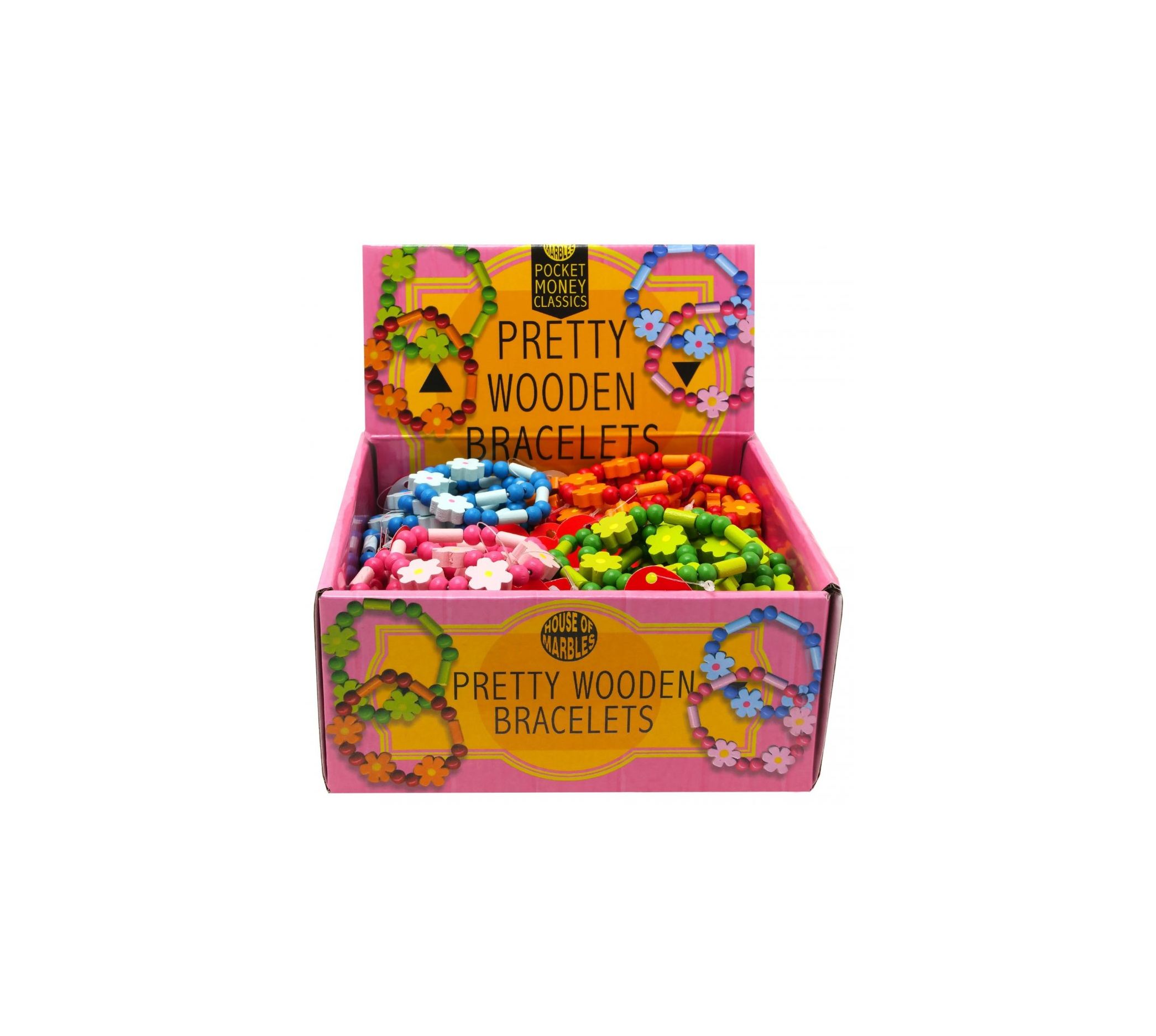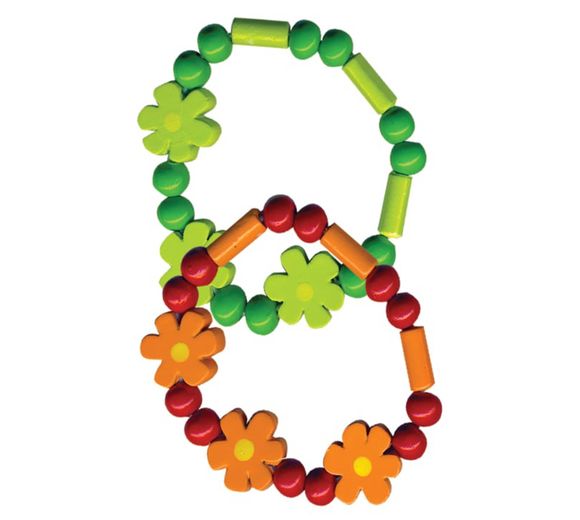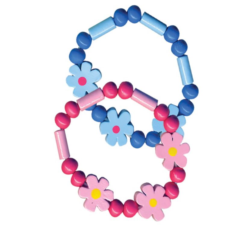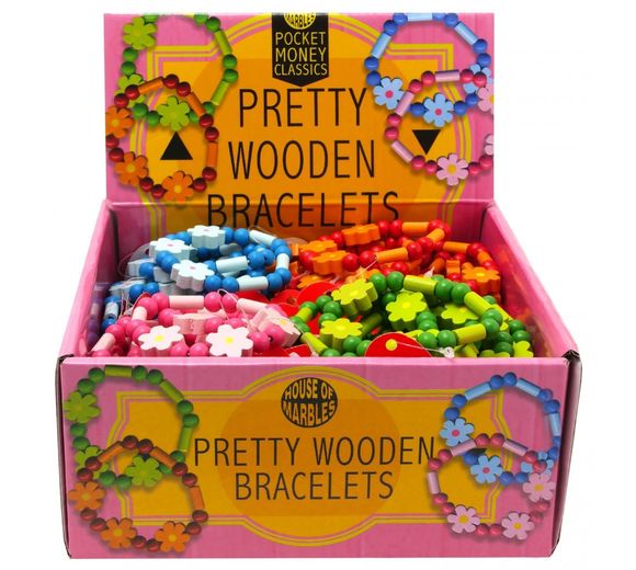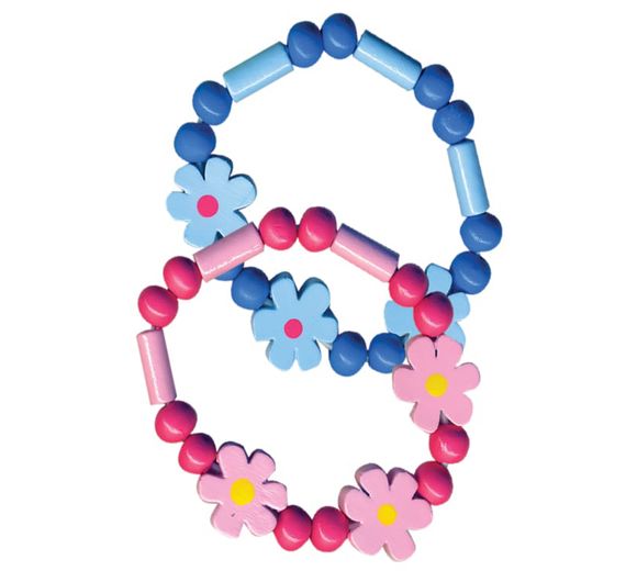 Pretty Wooden Bracelets with Flowers & Beads 7cm (CDU)
