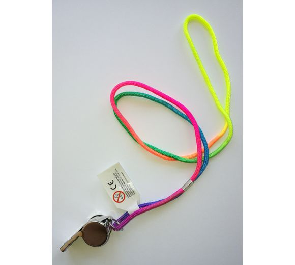 Whistle - Metal, on Rainbow Cord