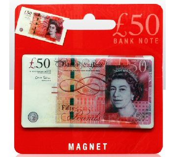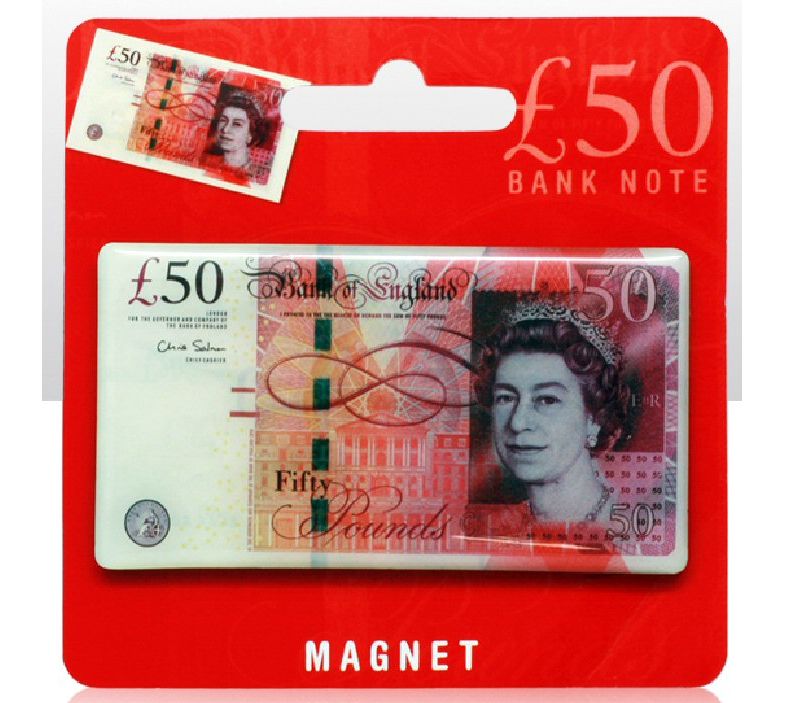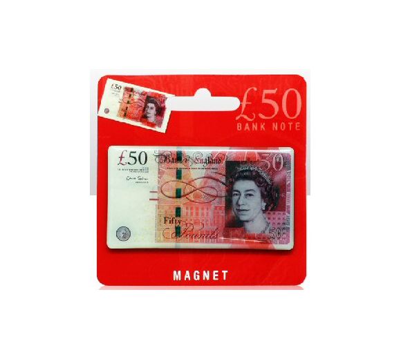Fifty Pound Note Metal Fridge Magnet (8cm) (on hanger card) (E.O.L.) - SAVE 20 !!