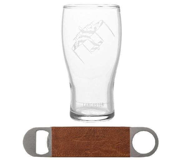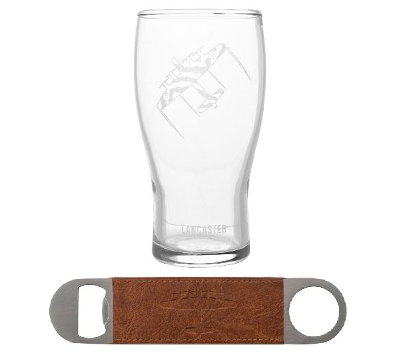 RAF Etched Pint Glass & Bottle Opener Set - Lancaster (160x80x80mm) (boxed)