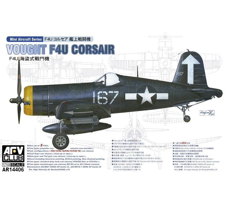 AFV Club 1:144 Aircraft Kit - Vought F4U Corsair -1/1A/1C/1D (US, British, NZ Markings) (x2 Models)