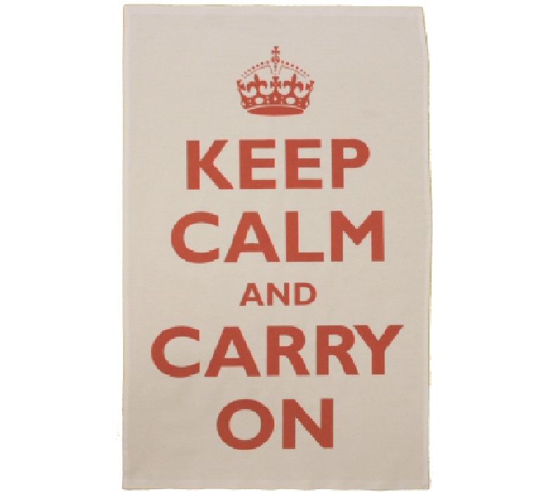 Tea Towel: Keep Calm (Red on White) (in clear hanger bag)