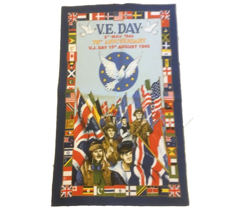 Tea Towel: V.E. Day 75th Anniversary (in clear hanger bag) (E.O.L.) - SAVE 50% !!