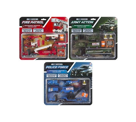 Die-cast Vehicles Play Set - Army / Police / Fire (3 asstd.) (28x25cm)