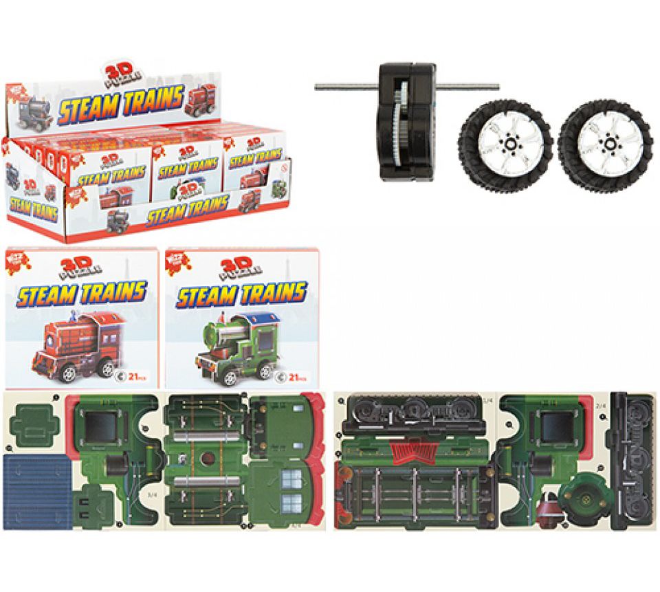 Steam Trains 3D Pop-Out Model Kit with P/B Motor (21 pces) (3 asstd. In CDU) (NEW)