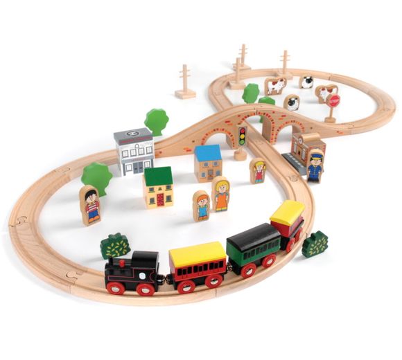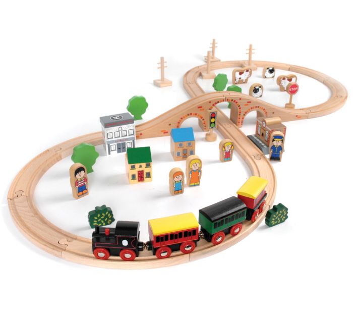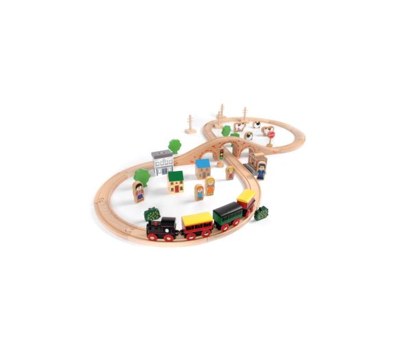 Tidlo Small World Play 50 Pce Wooden Train Set (3 Yrs+) (E.O.L.) - SAVE 20% !!