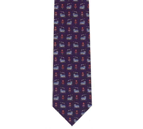 Men's Tie: Steam Trains with Crossing (Blue)