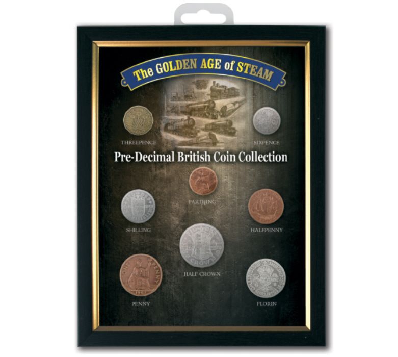 Golden Age of Steam Pre-Decimal British Coin Collection in Frame