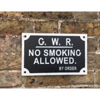 Minimum quantity for "Cast Iron Plaque: G.W.R. No Smoking Allowed (White Border & Black Background) (19 x 30 x 0.6cm)" is 1.