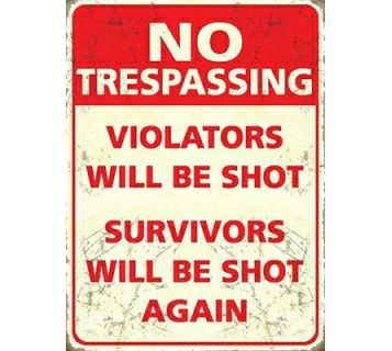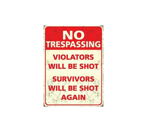 Metal Fridge Magnet (HU): No Trespassing - Violators Will Be Shot