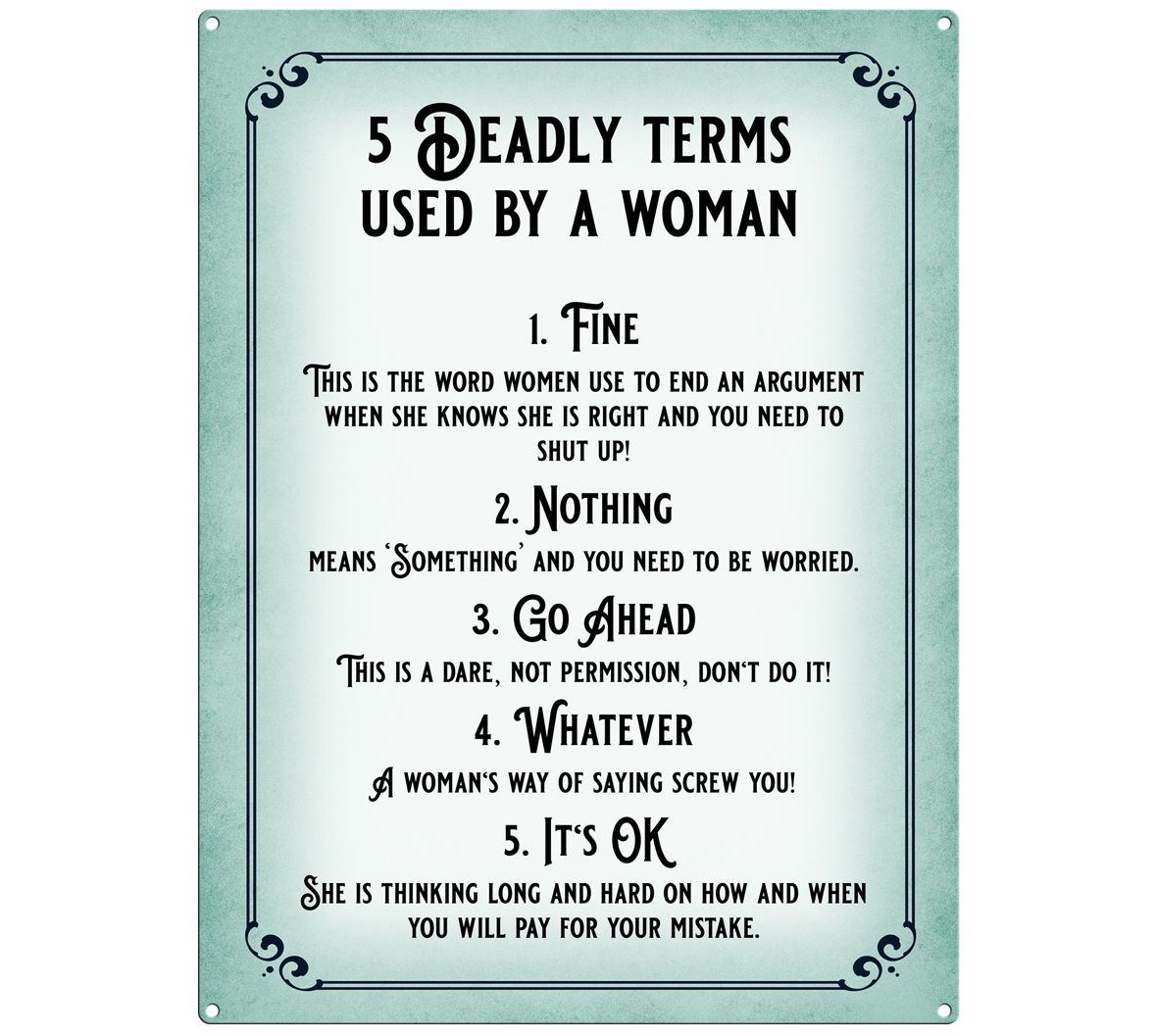 Mini Metal Sign (HU): 5 Deadly Terms Used by a Woman