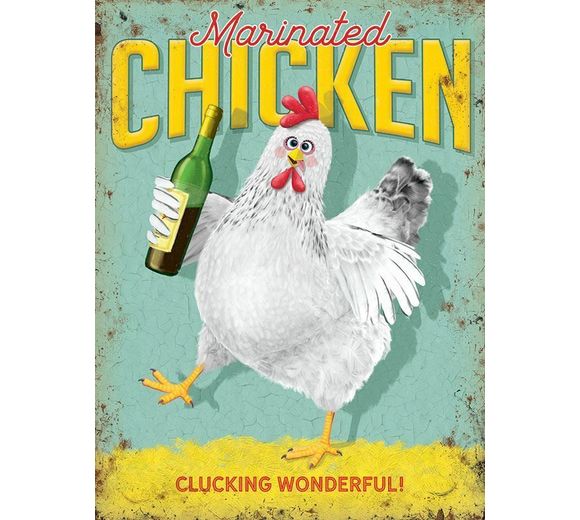 Mini Metal Sign (HU): Marinated Chicken - Clucking Wonderful! (E.O.L.) - SAVE 15% !!