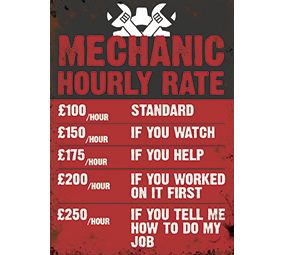 Mini Metal Sign (HU): Mechanic Hourly Rate