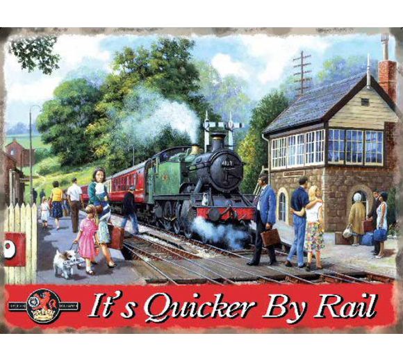 Mini Metal Sign (RL): It's Quicker By Rail