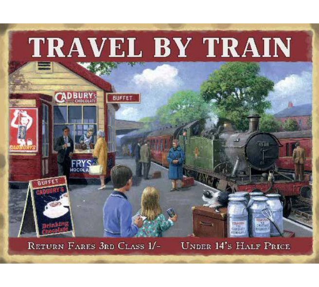Mini Metal Sign (RL): Travel By Train