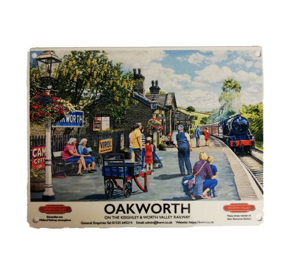 Mini Metal Sign (RL): Travel Poster - Oakworth on the K&WVR