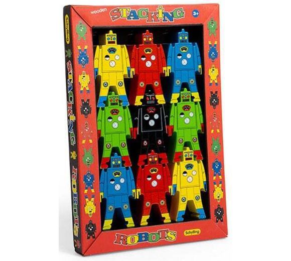 Schylling Wood Stacking Robots - Set of 9 (29x20x2.5cm) (3+ YRS) (E.O.L.) - SAVE 15% !!
