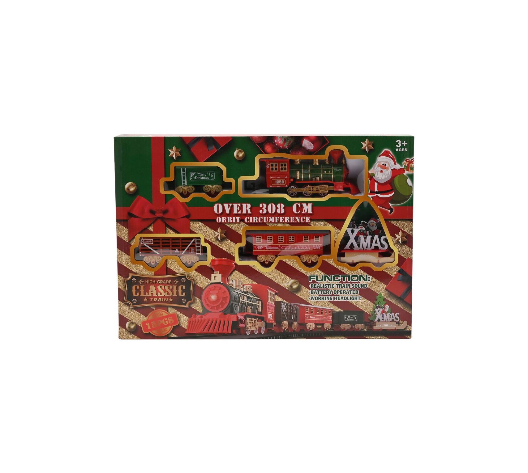 Christmas Classic Train Set 15 Pces w/Lights & Sounds over 308cm Track (294x420x55mm) (3+ YRS) (NEW)