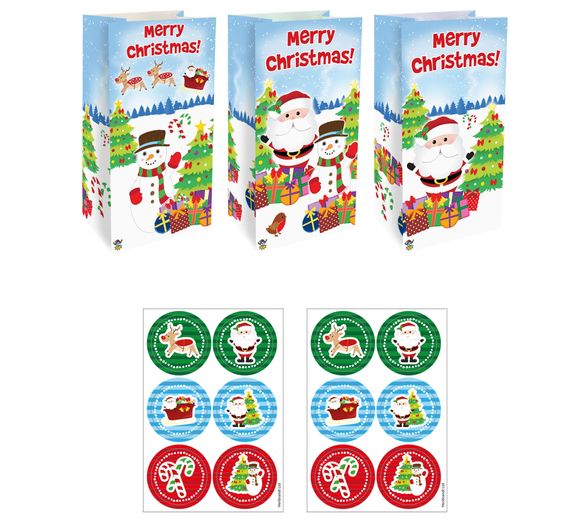 Merry Christmas Festive Paper Party Bag with Stickers (13 x 25 x 8cm) (3 asstd. Designs) (NEW)