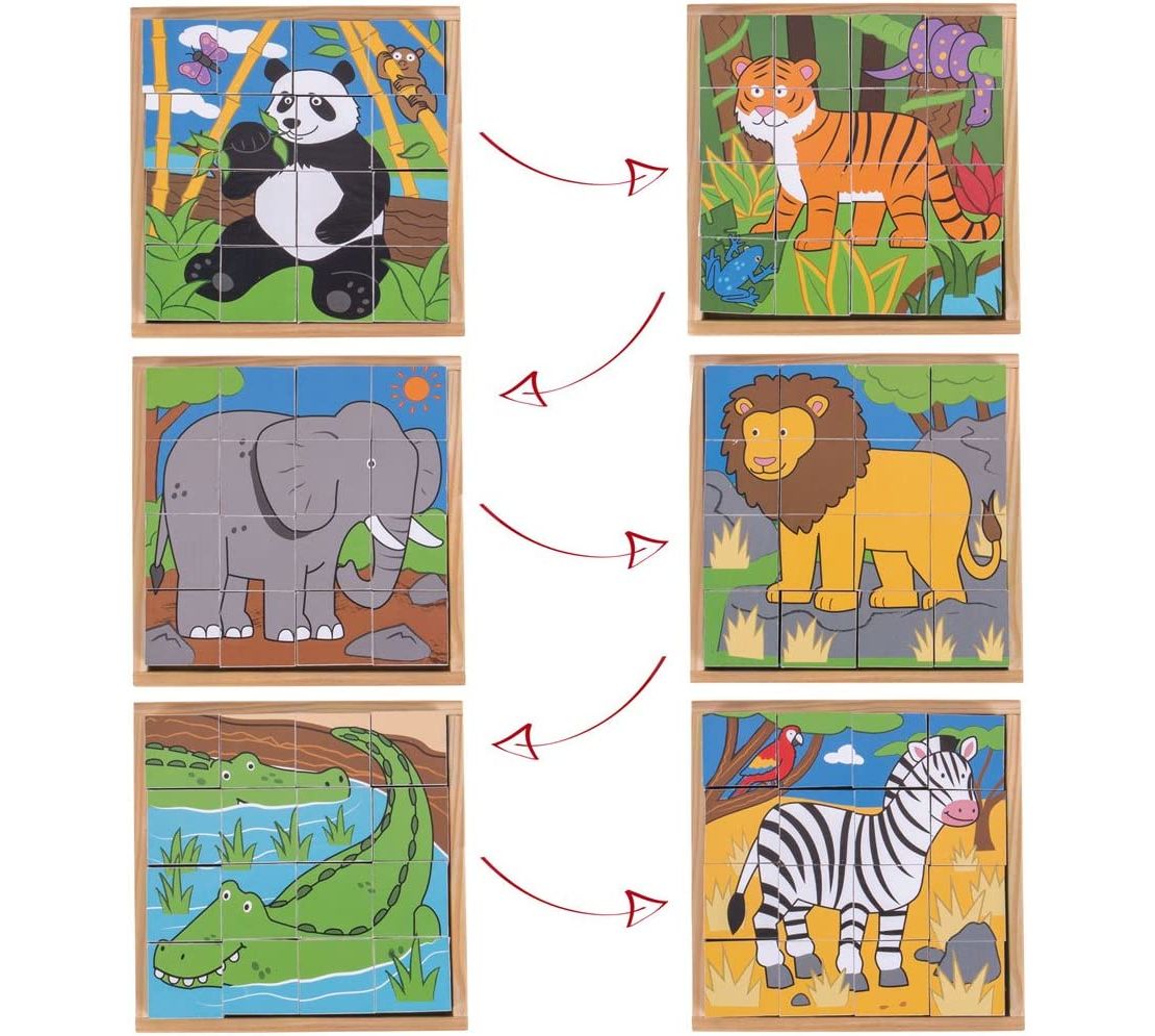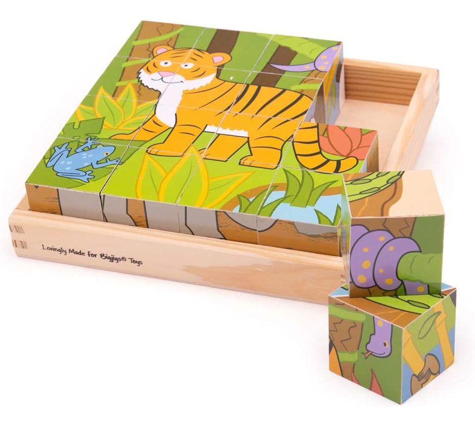 Bigjigs Wild Animal Cube Puzzle (18x18x4.5cm) (10 MTHS+) (E.O.L.)