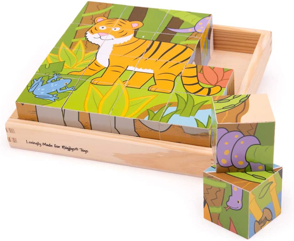 Bigjigs Wild Animal Cube Puzzle (18x18x4.5cm) (10 MTHS+) (E.O.L.)